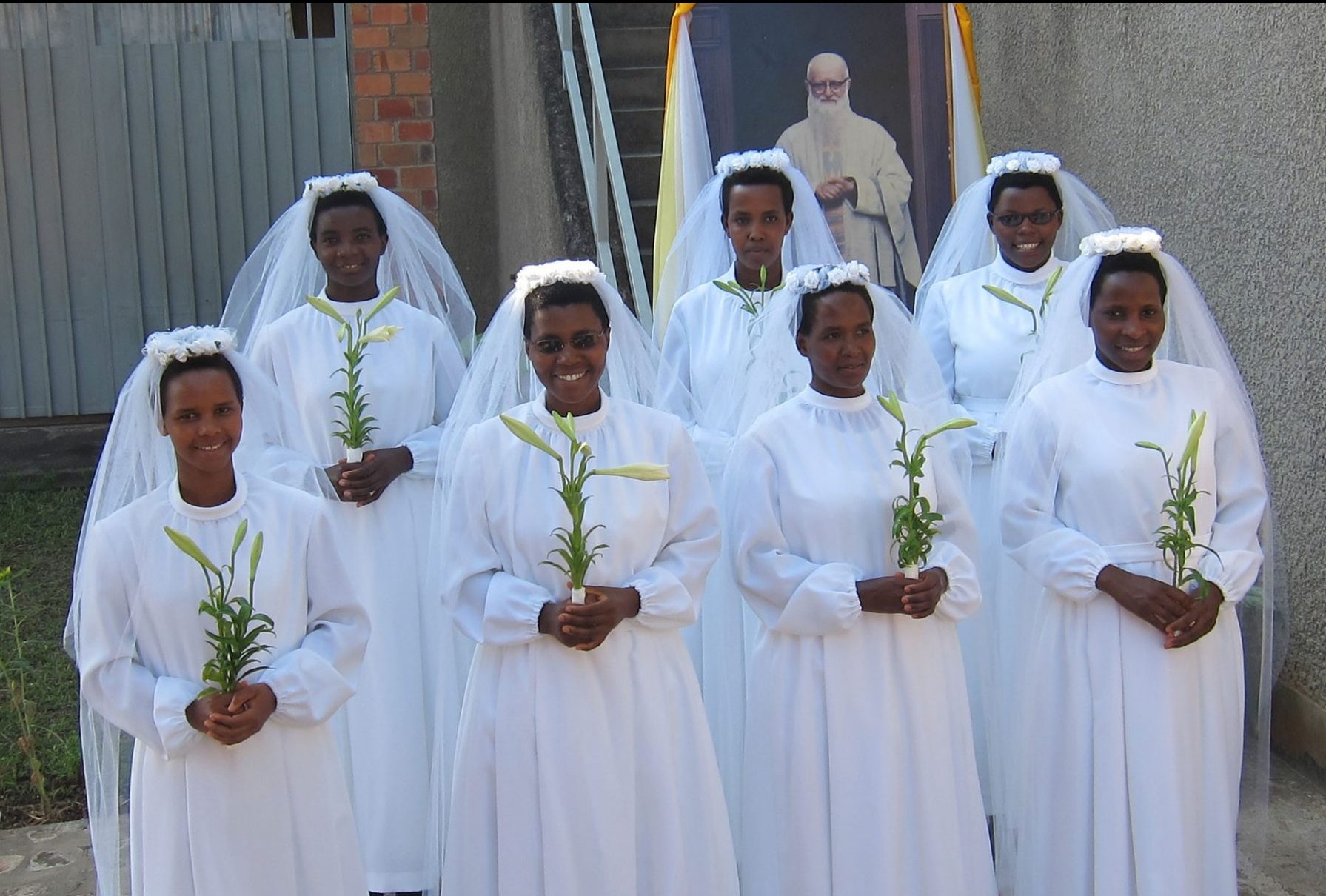 Ein unvergesslicher Tag wird für viele Menschen in Burundi (Afrika) der 10. Juni 2018 sein. Früh morgens werden vor dem Vertrauens-Heiligtum in Mutumba mehrere Fahnen gehisst. Das Heiligtum ist besonders festlich geschmückt. Ein grosses Staunen geht durch die Reihen, als die sieben Novizinnen in ihren Brautkleidern ins Heiligtum einziehen, um dort still im Gebet zu verweilen. Der Generalvikar Monsignore Anatole erteilt den Segen. In einer langen Prozession ziehen alle Anwesenden, unter anderem gut 50 Marienschwestern aus Burundi, Deutschland und der Schweiz, zur Pfarrkirche. Die Novizinnen werden angeführt von sieben weiß gekleideten Mädchen.