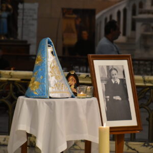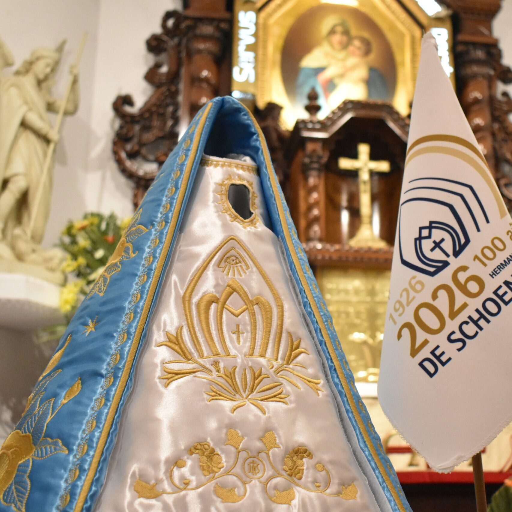 In diesem Jahr, in dem wir das hundertjährige Jubiläum unserer Gründung als Schönstätter Marienschwestern feiern, konnten wir eine sehr sprechende Geste vollziehen, die durch kleine offene Türen möglich wurde: Wir konnten ihr nicht nur erneut alles schenken, was wir sind und haben, sondern ihr auch ganz bewusst ein neues Kleid für ihr Pilgerbild im Heiligtum von Luján überreichen.