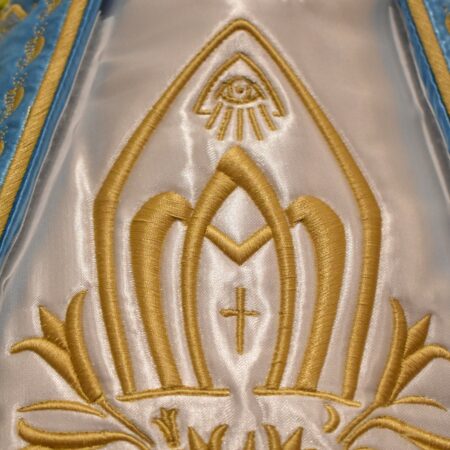 Es war eine feine Fügung der Vorsehung, dass wir ihr dieses neue und schöne Kleid schenken konnten, das von den Karmelitinnen gefertigt wurde, die neben dem Heiligtum leben. Es trägt ein gesticktes Symbol, das uns kennzeichnet: das Heiligtum mit dem Symbol des Vaters; im Inneren das Kürzel MTA, in das das Kreuz integriert ist, so wie es im Monogramm zum Ausdruck kommt, das wir auf unserem Schleier tragen, sowie Lilien, die das Heiligtum umgeben.