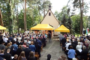 Bishop Romuald Kamiński, bishop of Warsaw-Prague, came for the Eucharistic celebration on Sunday. This day was the patronal feast of our shrine. In his sermon, the bishop compared our lives to a journey where things are not always easy; sometimes you have to go through great difficulties. However, it is important for us to trust God without limit.