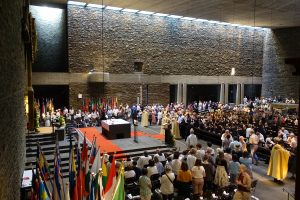 With these thoughts in mind, about 1,200 people form a procession after the Eucharist, which is accompanied musically by the “Musikverein Niederwerth 1922”. Traditional Corpus Christi songs, new songs, prayers of praise and supplication in the intentions of the whole world are heard, while we accompany Christ in the monstrance over Mount Schoenstatt. Especially impressive are the intercessions of the children at the third altar.