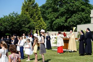 Finally it is Sunday – a sun (ny)day in the truest sense of the word! The bells are ringing festively, about ten priests and many faithful – including French, Croatian, Polish and Swiss groups as well as pilgrims from different parts of Germany – come to Schoenstatt to experience the Feast of Corpus Christi.