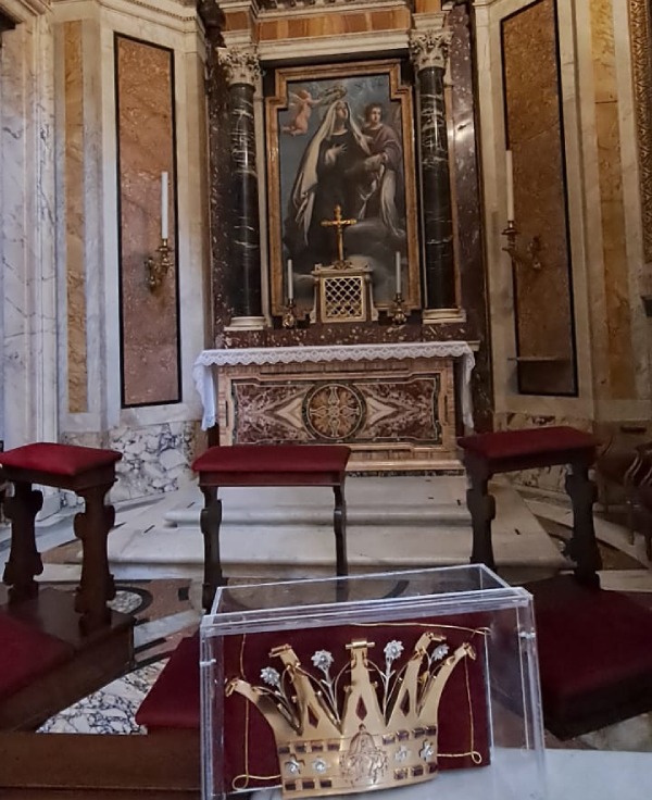 «El 21 de abril, la Hna. M. Julia y yo fuimos a la Basílica de Santa María la Mayor para la Santa Misa a las 10 de la mañana, llevando con nosotras la corona con la que la imagen de la Virgen será coronada en el Santuario Mater Ecclesiae el 9 de junio. La patrona de esta basílica es Santa Maria Salus Populi Romani (María, Salud del Pueblo Romano), a la que el Papa Francisco ha visitado muchas veces -a menudo con un ramo de flores- en ocasiones especiales, así como antes y después de cada viaje apostólico.