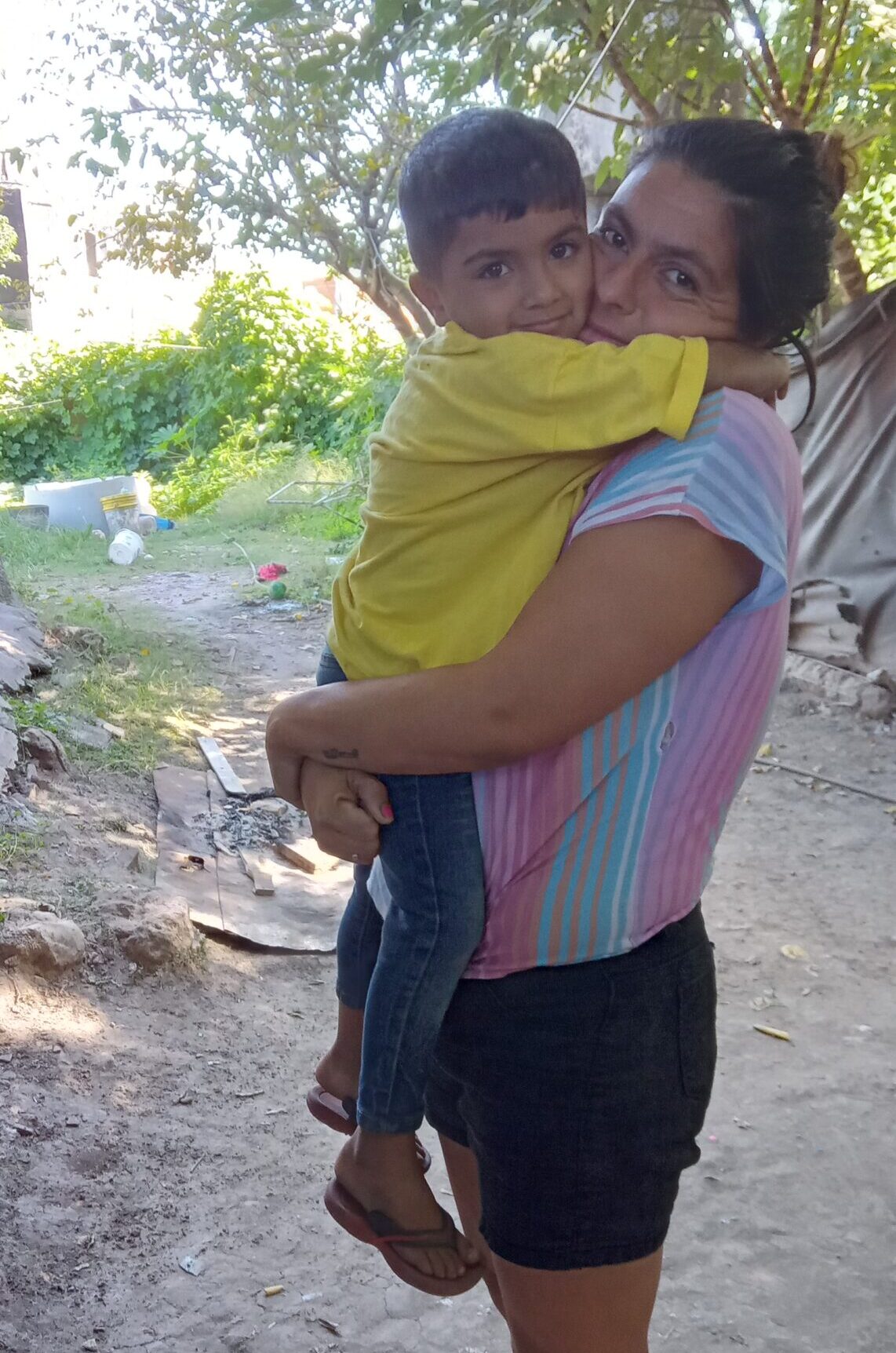 Me alegro de que ella haya acogido mi pedido y me abra la pequeña reja y la cortina que me permite entrar a su vivienda de un ambiente, dividido por otra cortina. Le pregunto cómo llegó a este barrio, cómo está conformada su familia, cómo se sustenta ya que está sola con sus tres hijos: -Dos veces por semana trabajo en una casa de familia, a una hora en colectivo desde acá. Hago de todo: desde la limpieza hasta pintar paredes. Tengo que dejar a mis hijos solos en casa, los cuida una vecina. Pero me llevo el menor conmigo.