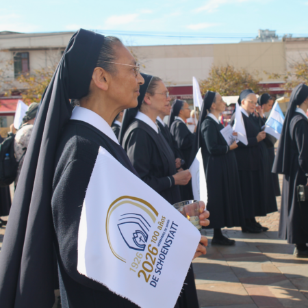 Tantas veces hemos escuchado hablar del intercambio de corazones con nuestra Mater ter Admirabilis, en el Santuario. En la oración de pequeña consagración le entregamos a María todo lo nuestro y ella nos regala a su vez, todo lo suyo. En la preparación a esta peregrinación, en esta oración tan querida para nosotras -y para todos los hijos de Schönstatt- escuchamos resonar el eco de aquella memorable frase del Negrito Manuel: “soy de la Virgen, nomás” por la que se entregó como “instrumento y posesión suya”. Y – por la sacramentalidad del tiempo- estando el 11 de abril en las vísperas del aniversario de la Consagración de niño de nuestro Padre y Fundador, conscientemente nos insertamos en aquella hora de alianza en la que Catalina Kentenich confió a su hijo a la Madre del cielo y el niño, conscientemente, abrazó esta alianza.