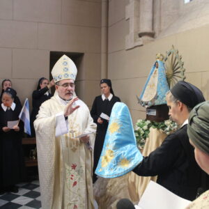 El obispo, secundado por la Hna. Cecilia María Flecha Cosp, Superiora Provincial de las Hermanas de María y el Rector del Santuario de Luján, Padre Lucas García, hicieron el cambio de vestido. Con una hermosa oración rezada por todas las hermanas, cerramos ese inolvidable momento.
