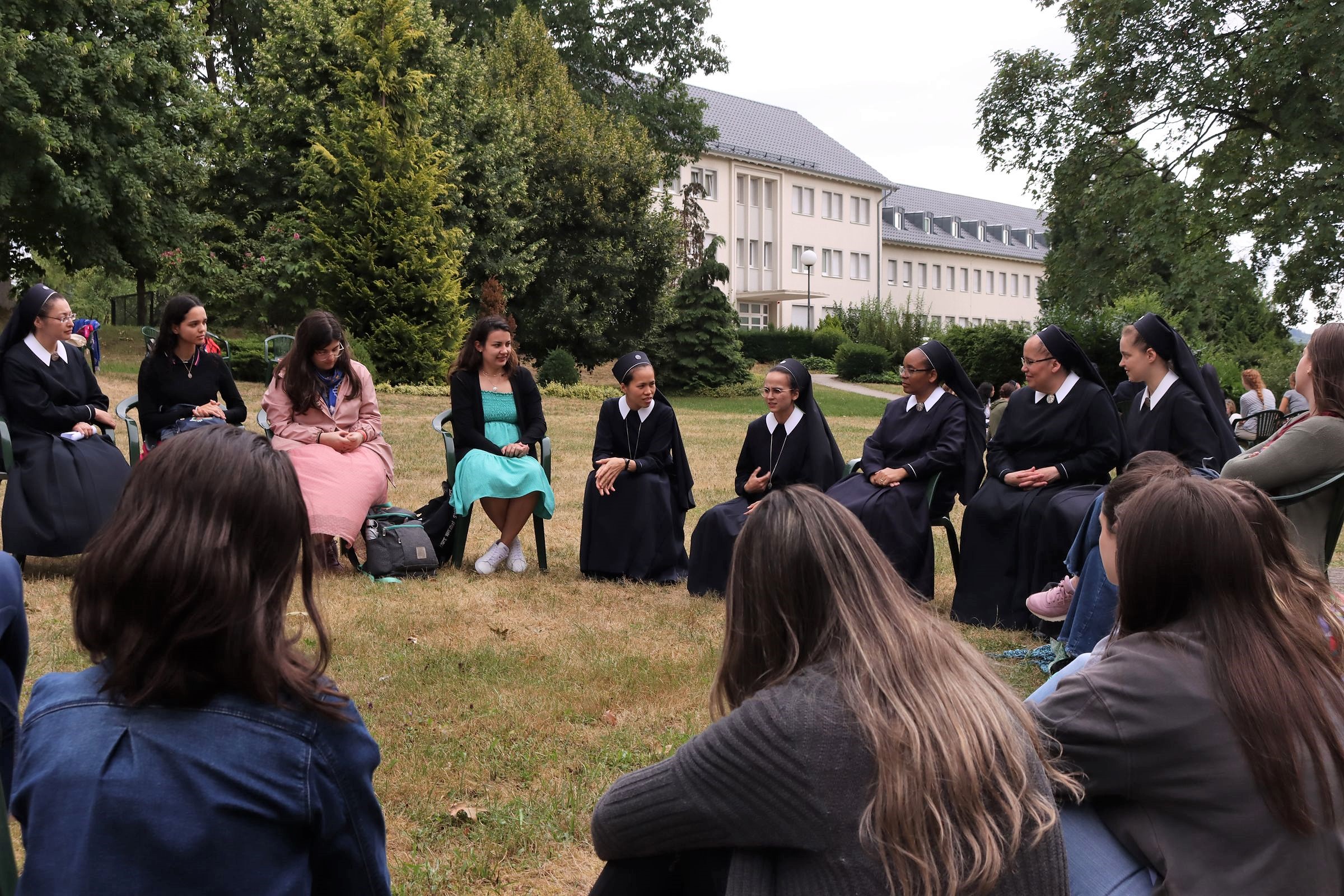 Nel pomeriggio le ragazze sono state invitate a venire nella nostra casa madre, che per quest’incontro speciale ha spalancato le sue porte. Per questo momento di confronto si sono incontrate 120 giovani donne e molte suore, fra le quali novizie e postulanti di molti Paesi. Dopo un breve saluto in varie lingue vi sono stati canti, balli e un piccolo rinfresco. A unirci tutti c’era un’unica lingua, quella di Schönstatt.