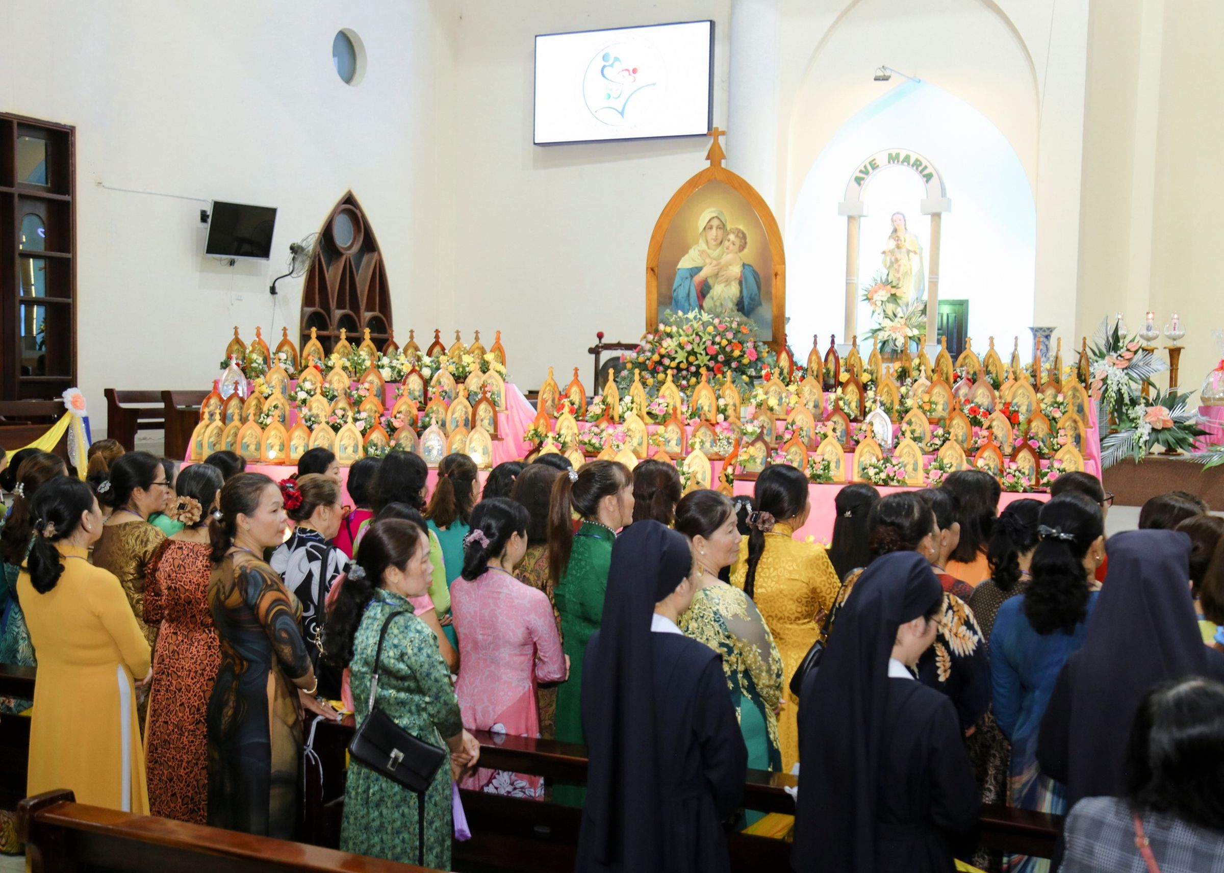 Sono arrivate oltre mille persone. Gli accompagnatori, rispettando una tradizione del Paese, sono entrati in chiesa portando le icone della Madonna Pellegrina. Nella sua bella omelia, il vescovo Josef si è soffermato sul brano del Vangelo, riguardante l’incontro di Maria con Elisabetta. Al termine della S. Messa, i vari referenti hanno rinnovato la promessa di assumersi la responsabilità del proprio circolo per un altro anno. Il vescovo ha espresso il desiderio che la Madonna Pellegrina si diffonda in tutta la diocesi e in tutto il Vietnam. Possa la Madonna scegliere apostoli entusiasti a tal fine. Grande è stata la gioia durante la cena nel cortile della parrocchia, alla quale si erano iscritte 530 persone.