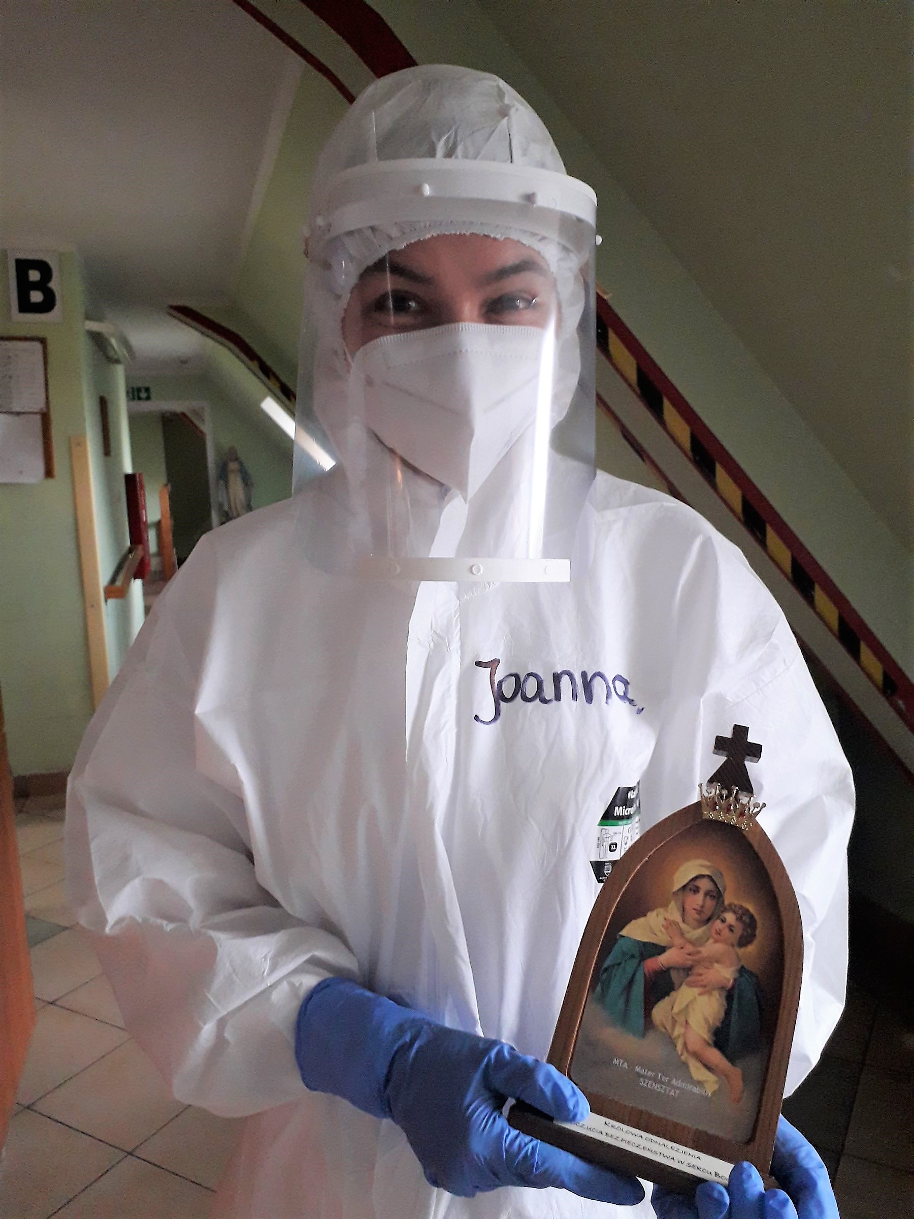 przebywała w charakterze posługi wolontariackiej, na Oddziale II Zakładu Opiekuńczo-Leczniczego Caritas Archidiecezji Warszawskiej. Pacjenci tej placówki oraz duża część personelu została zakażona koronawirusem. W tej sytuacji dyrekcja ośrodka zwróciła się do zgromadzeń zakonnych o wolontariacką pomoc. Nasza siostra M. Joanna była jedną z kilku sióstr i braci z różnych zgromadzeń, którzy podjęli to wyzwanie. Po zakończeniu swojej posługi siostra M. Joanna odbyła czas samoizolacji (kwarantanny) i przeszła obowiązkowe badania, a następnie mogła wrócić do swojej wspólnoty w Otwocku-Świdrze. Podzieliła się też kilkoma swoimi spostrzeżeniami z tego szczególnego czasu.